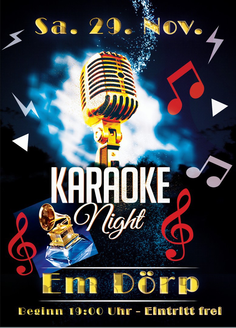 +++ Bitte vormerken 3: Sa. 29.11.25 Karaoke Abemd Em Dörp with the Voice Star T. Schmi!!! +++